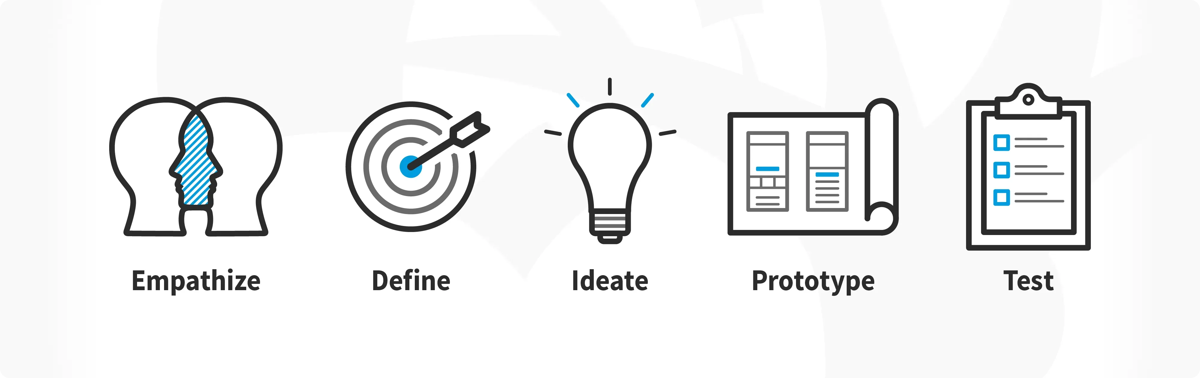 Design thinking contains five phases: 1. Empathize, 2. Define, 3. Ideate, 4. Prototype, 5. Test. The core purpose of the process is to allow us to work in a dynamic way to develop and launch innovative solutions. Design Thinking makes us Think Outside the Box. We just need to ask right questions and challenge assumptions.