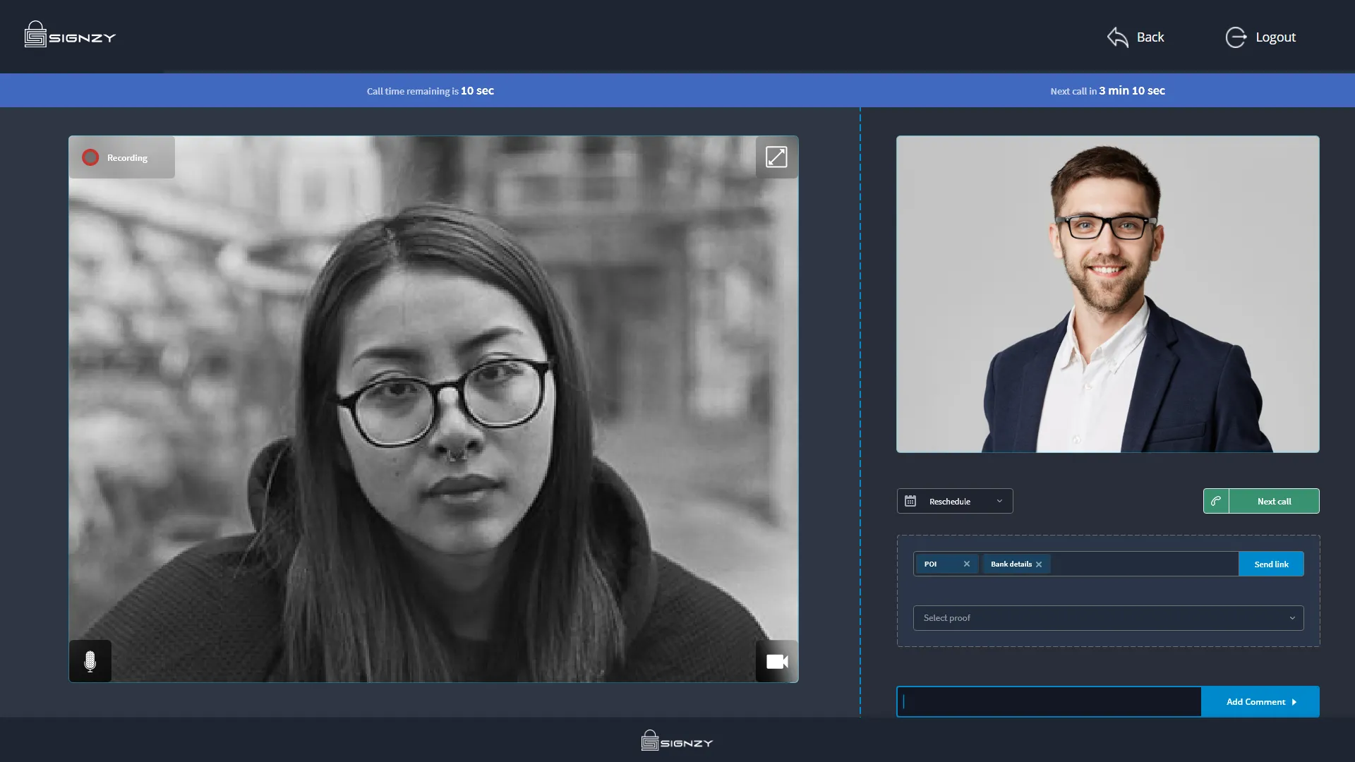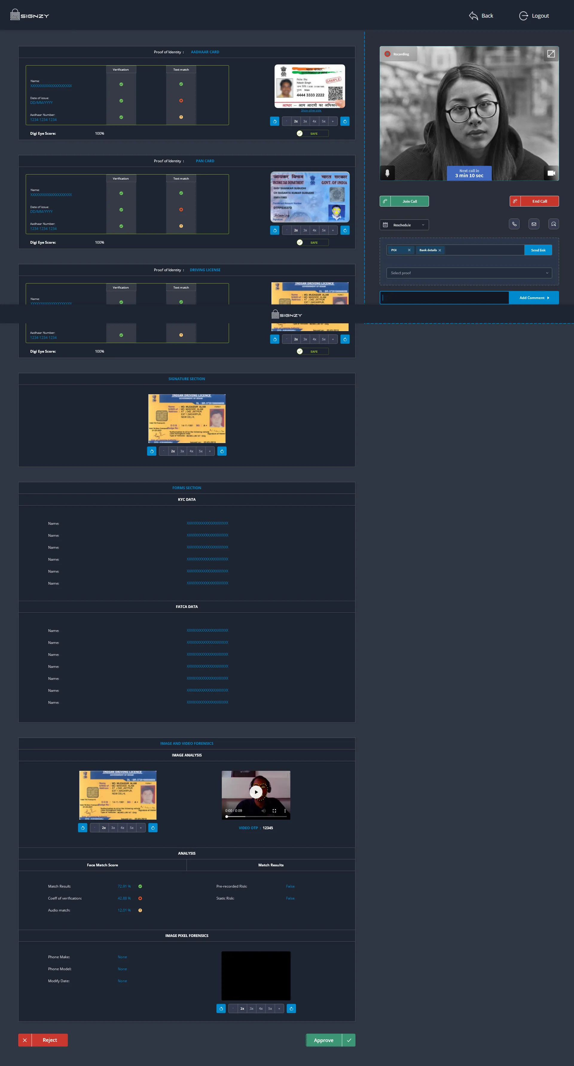 As soon as the user completes the application, he will be asked to schedule video verification slot or wait for a few minutes to connect to the next available slot. Once the video verification is done, this video data will be saved and sent along with the application to the backops user for verification. The backops user takes a right decision based on all the available data and the video verification data.