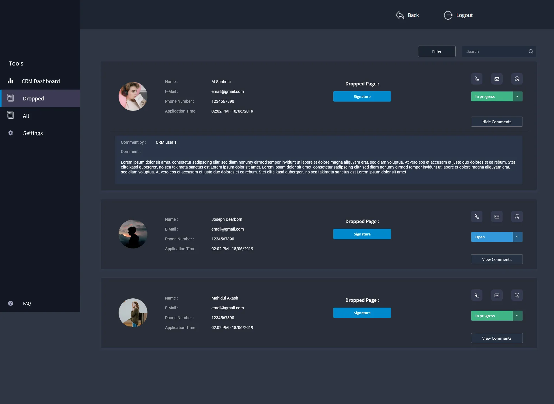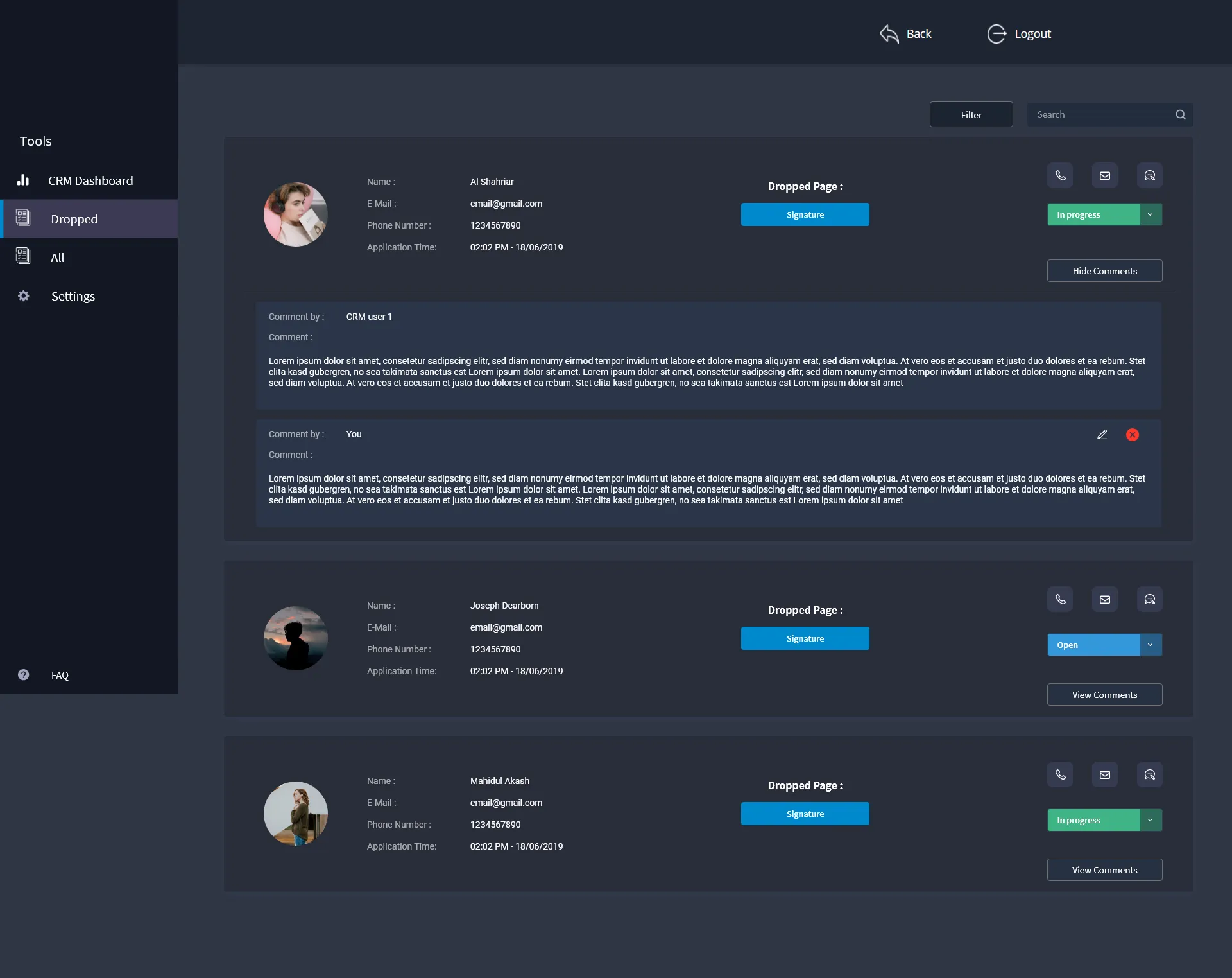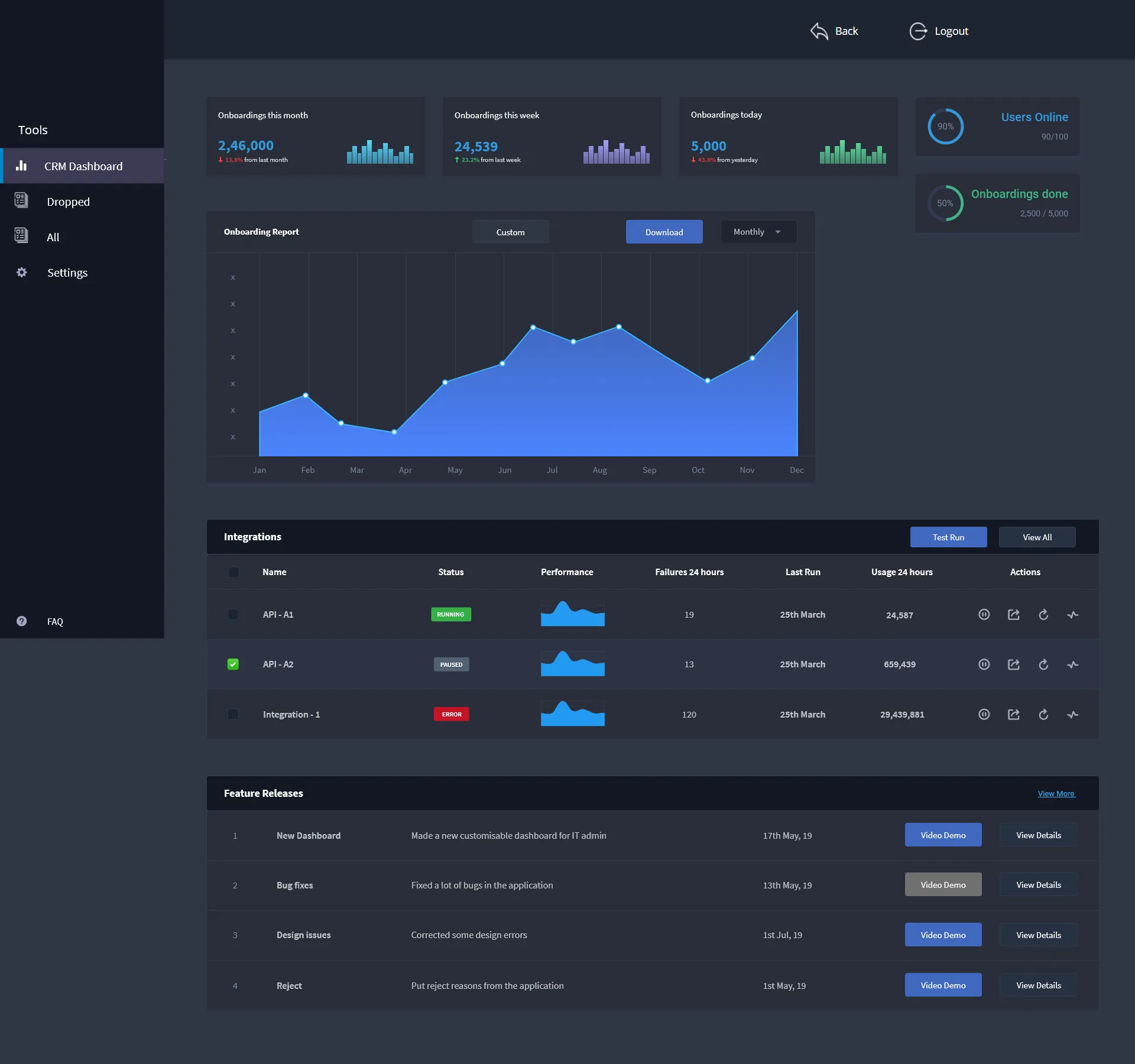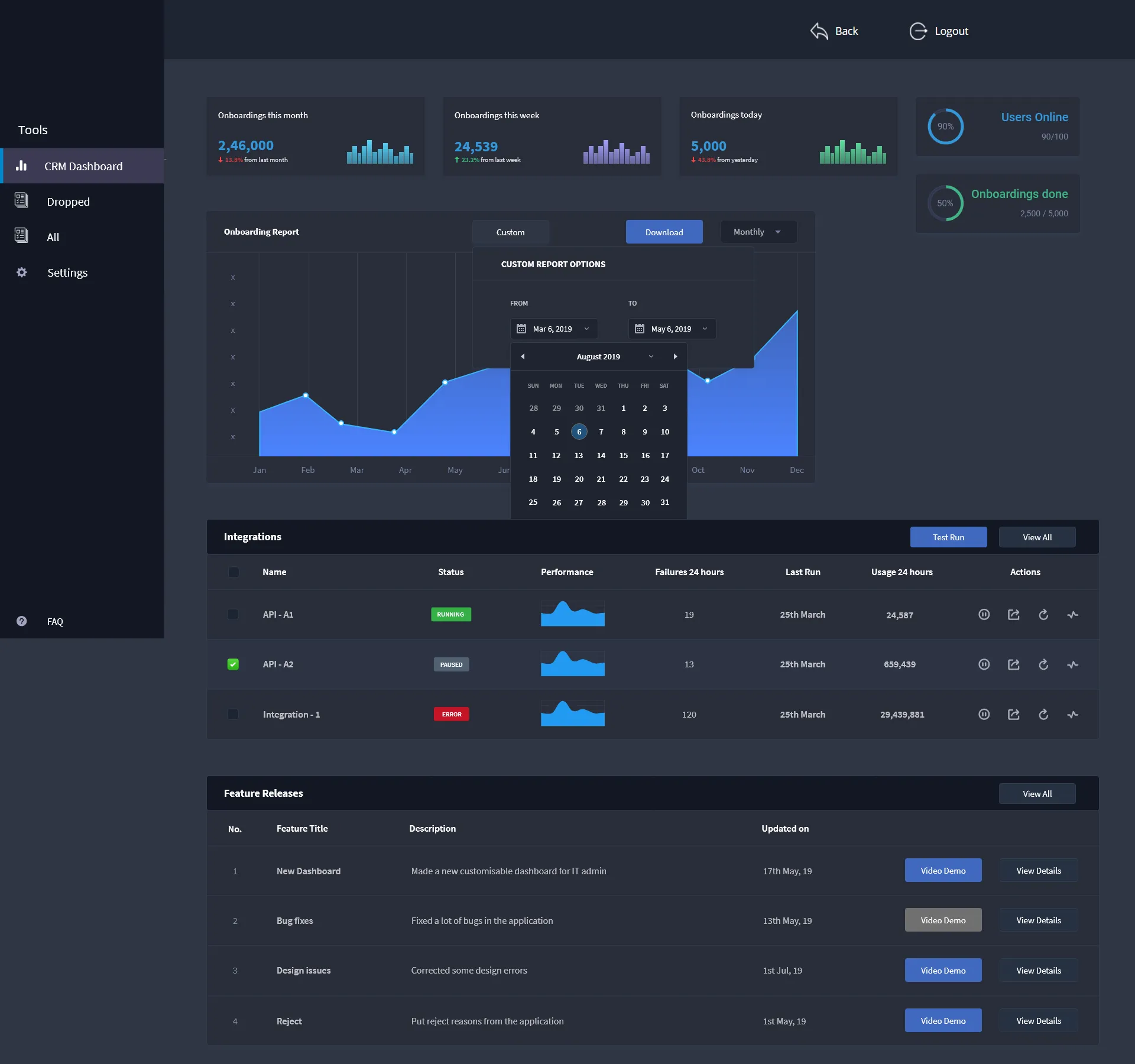 Design of Customer Relationship Module dashobard and features