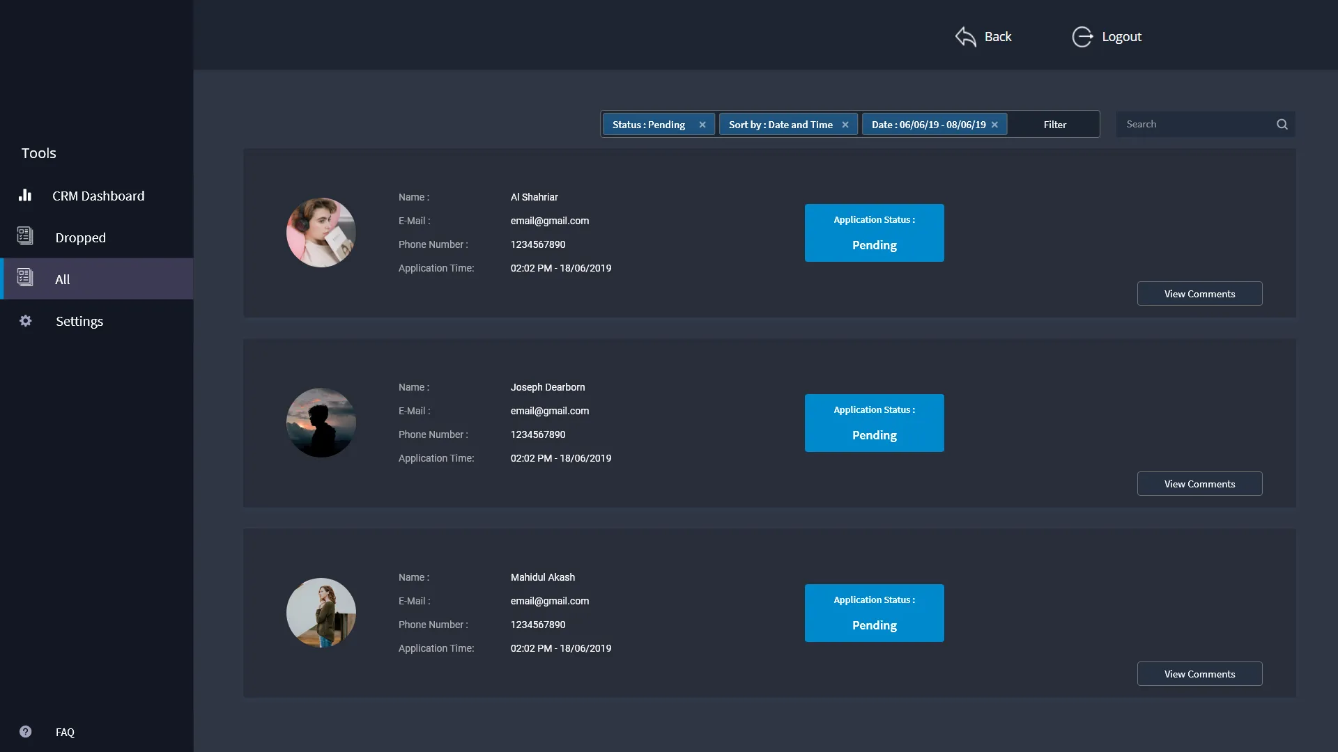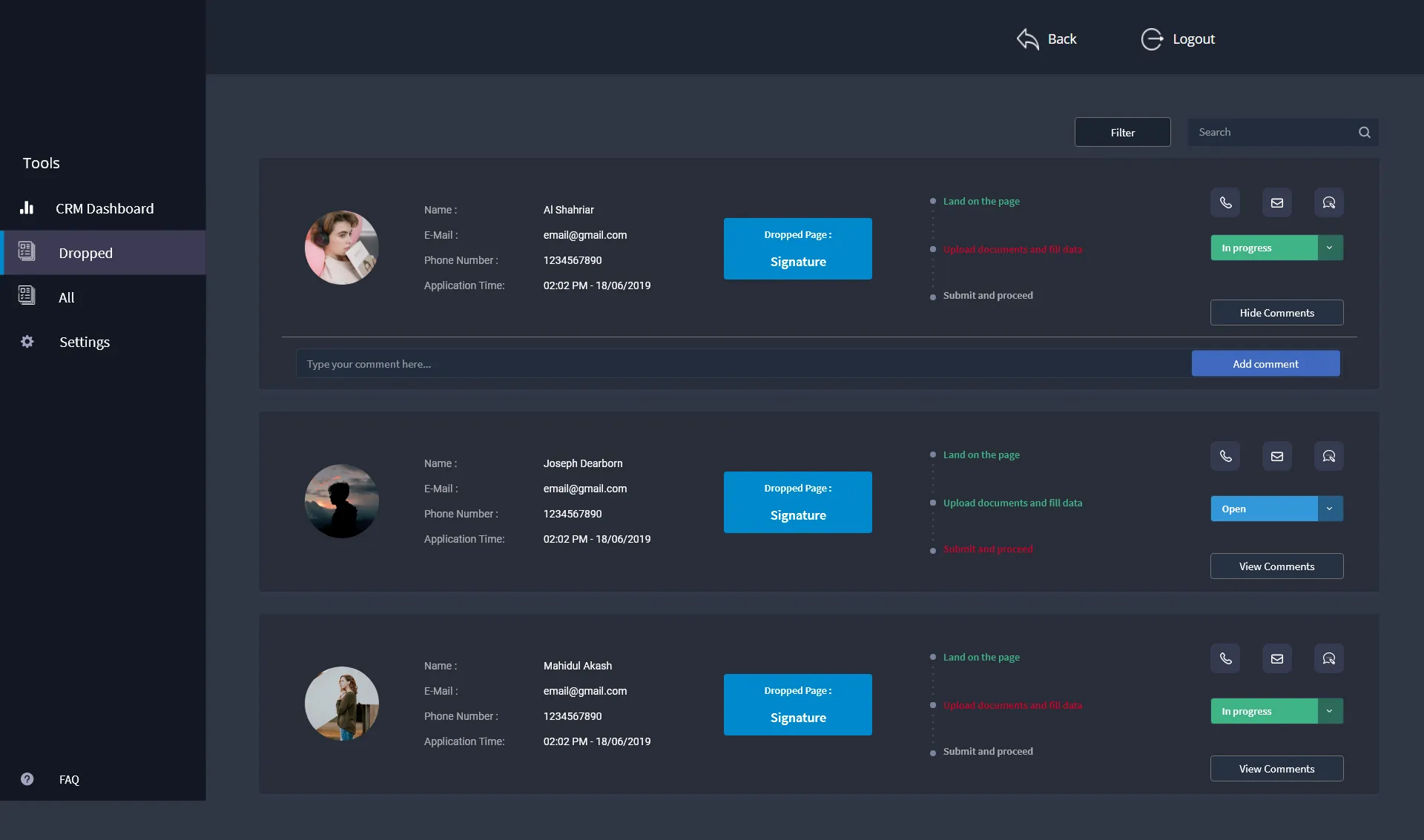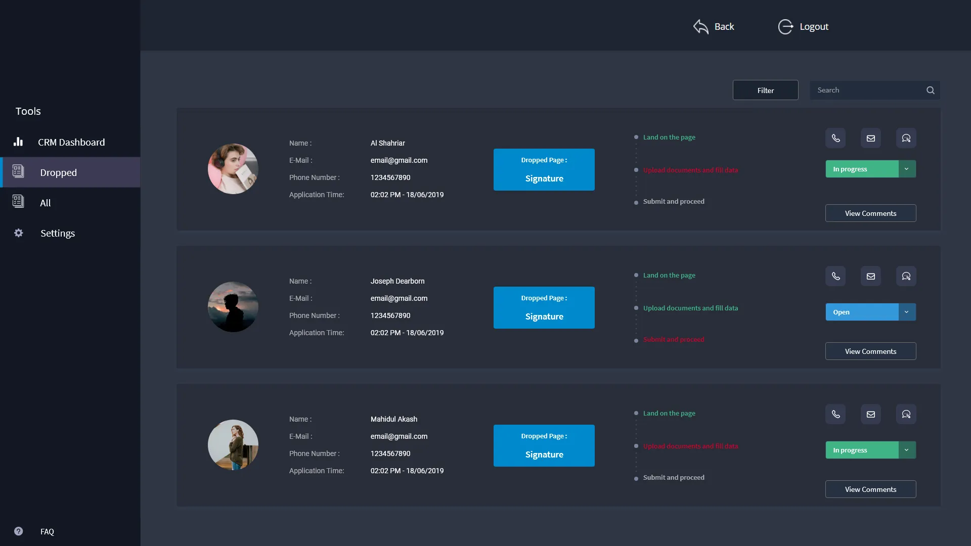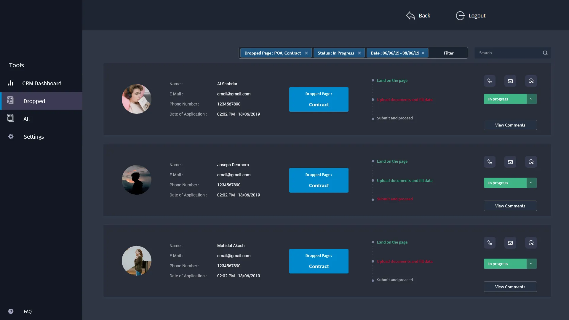 Design of Customer Relationship Module dashobard and features