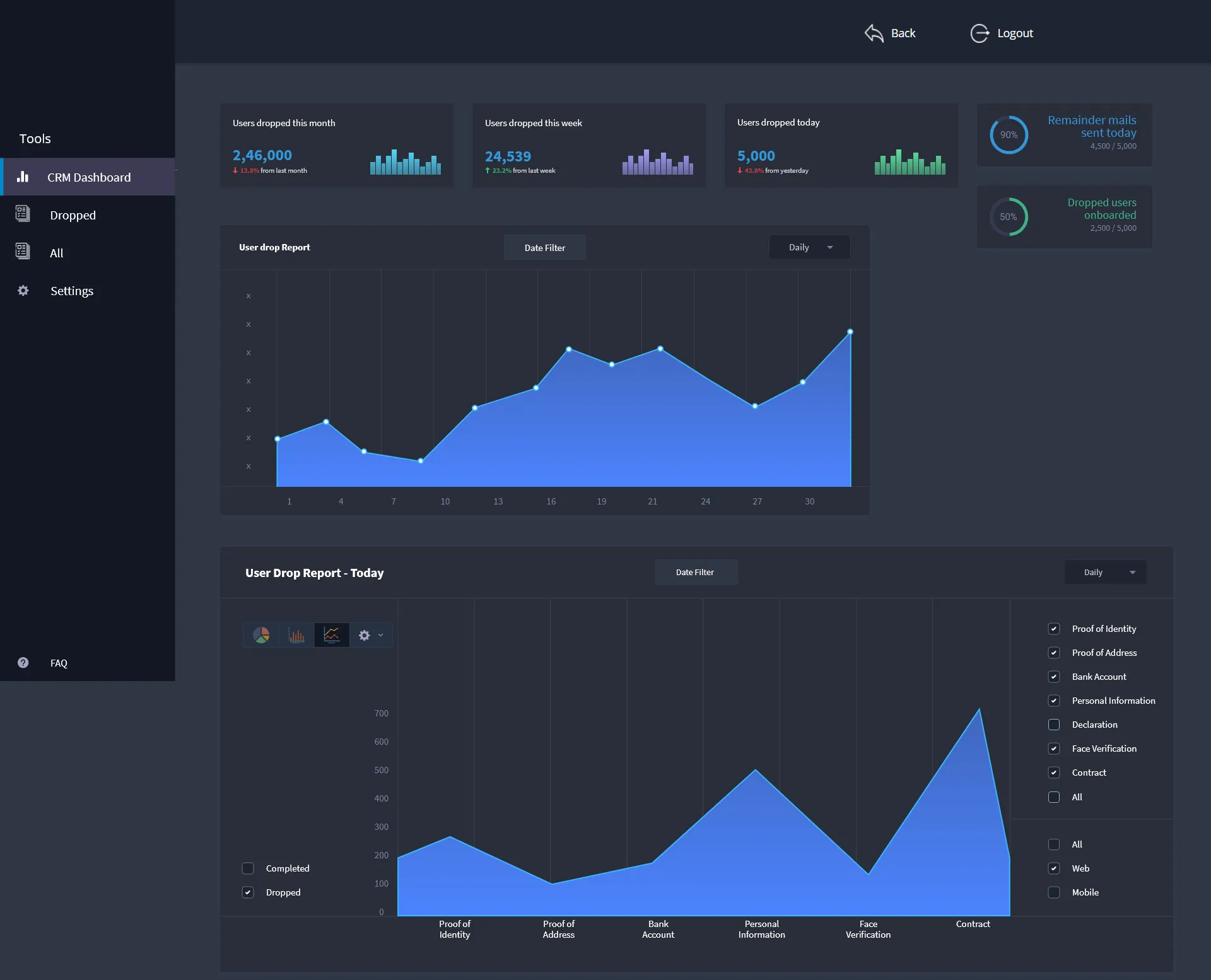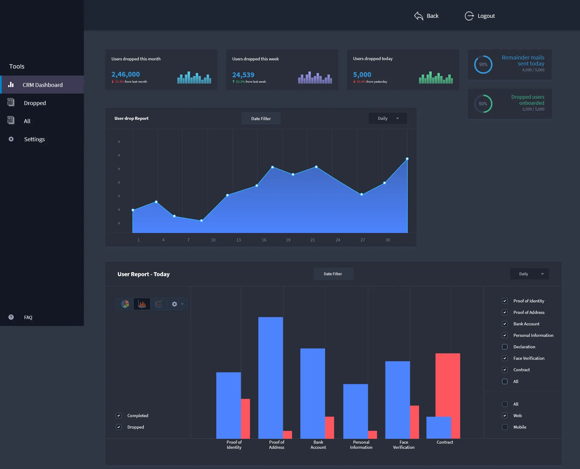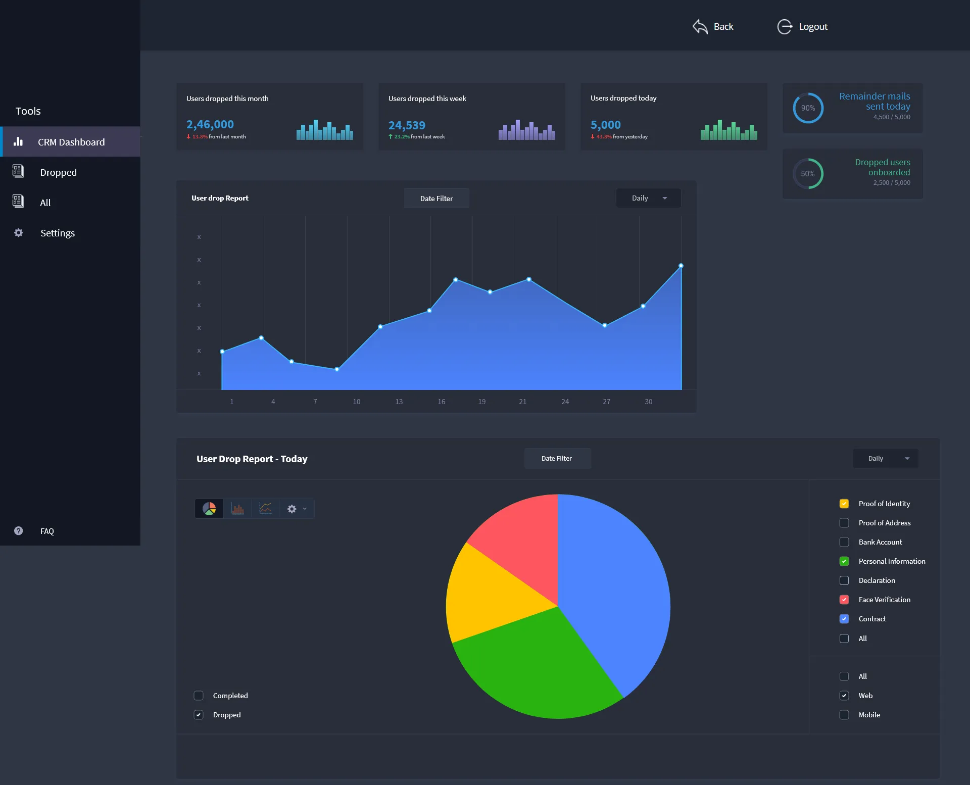 This also includes why their users are failing to complete the application or where the user needs more help to complete the application. How many applications are being submitted, processed or rejected on a daily basis. Reports of all the previous applications that have been processed. This data can help prove to be an important factor in improving the user experience and growth of the company.