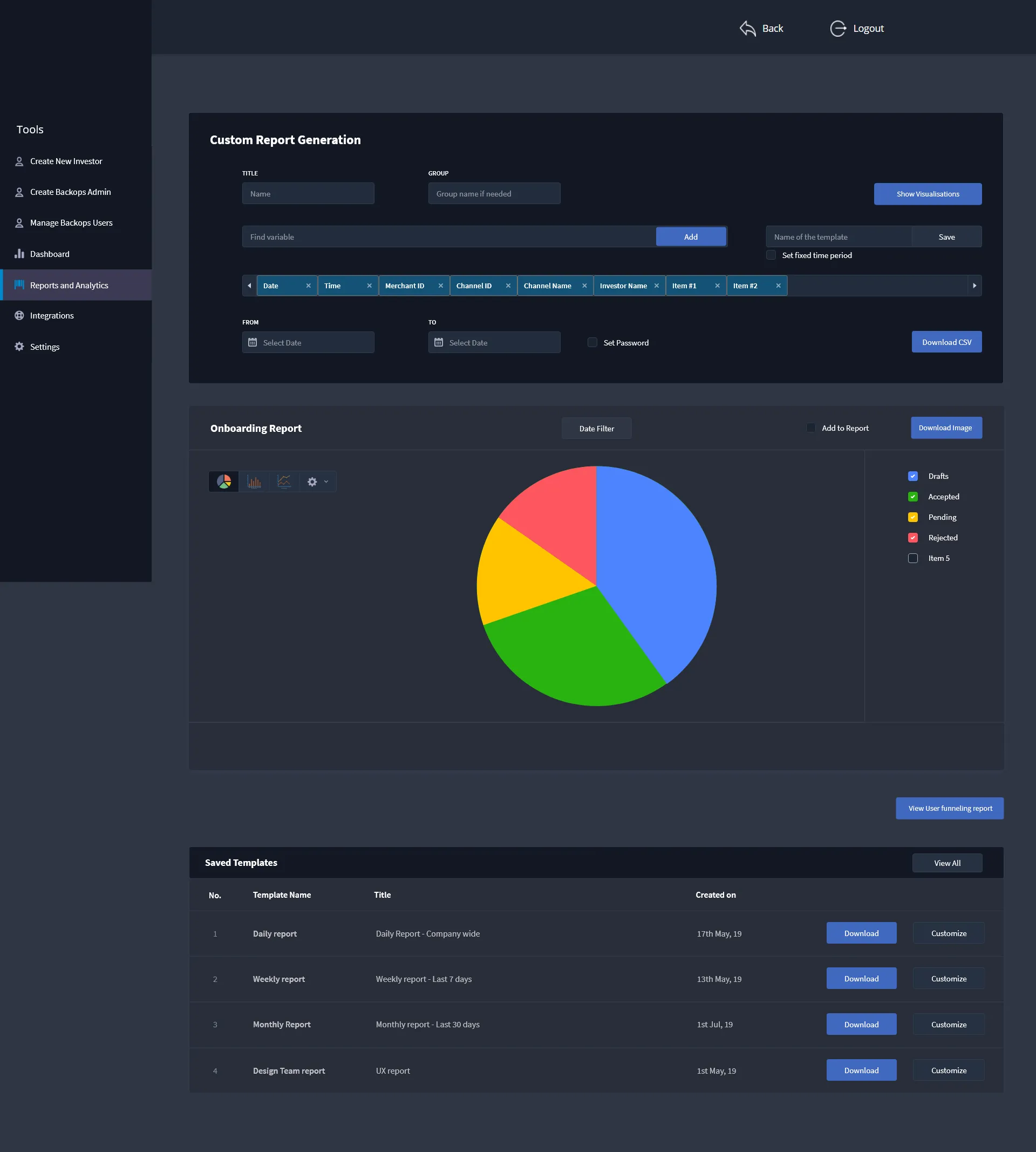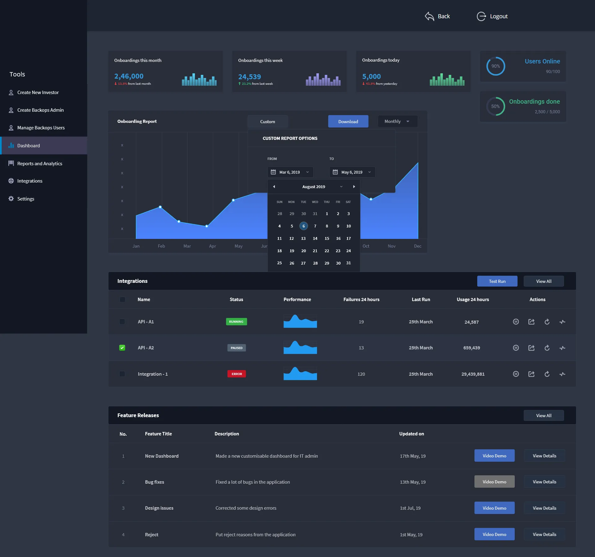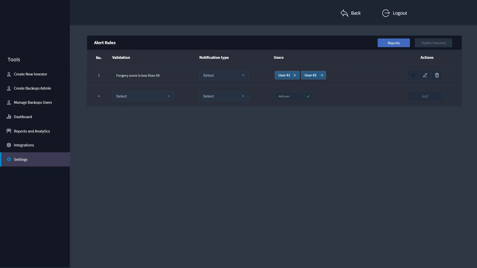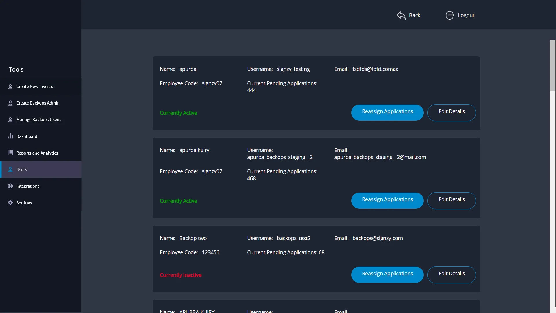 Additional features that a backops user requires to complete his day to day task with ease include the addition of Integration module, Reports for submitting to manager or higher authority and keeping track of number of applications processed.