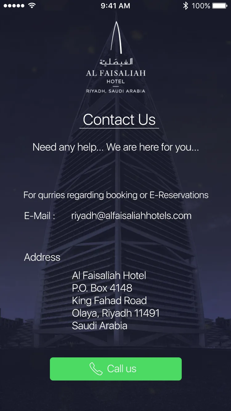 This luxury high-rise hotel in Saudi Arabia, and near King Khalid International Airport. Please see images for more details.
