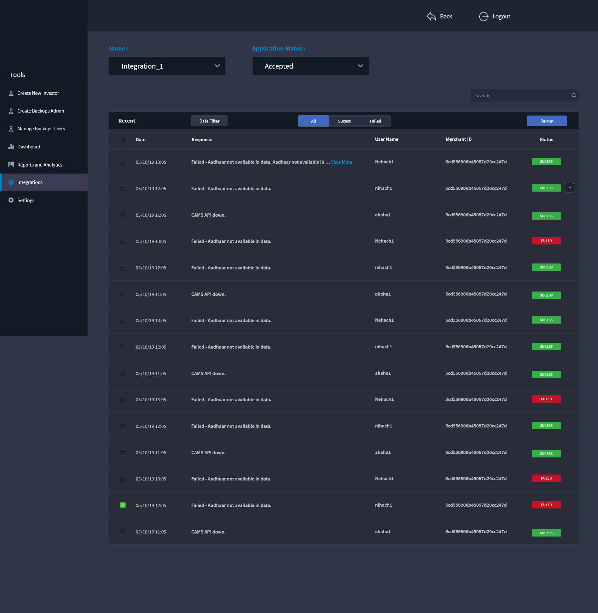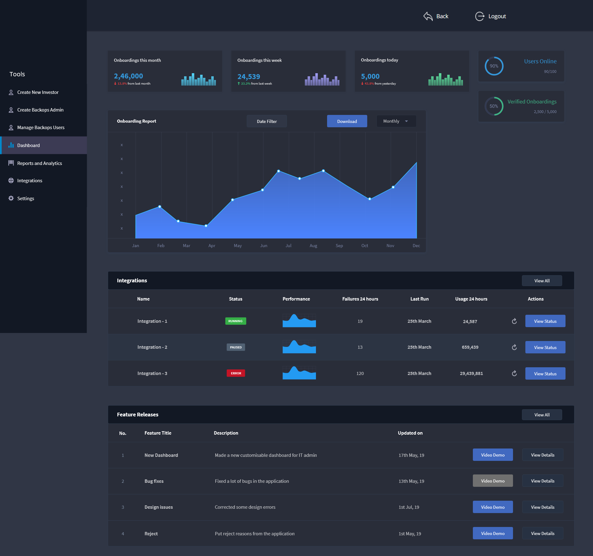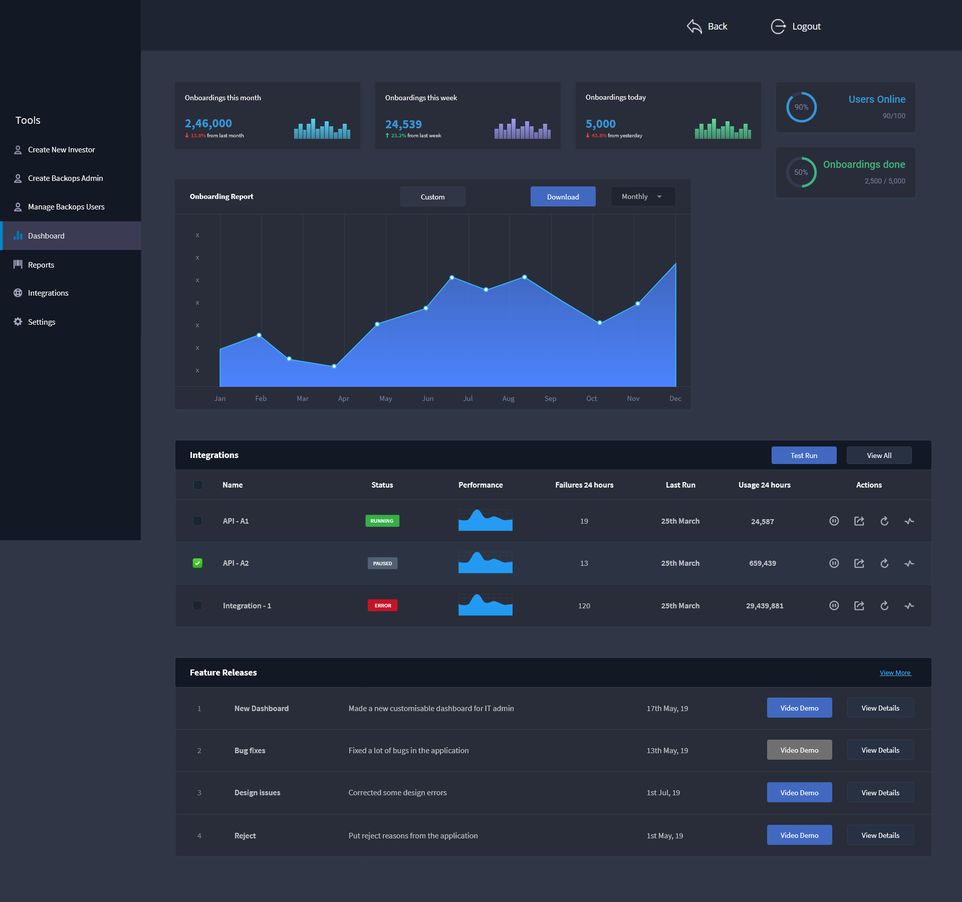 Additional features that a backops user requires to complete his day to day task with ease include the addition of Integration module, Reports for submitting to manager or higher authority and keeping track of number of applications processed.