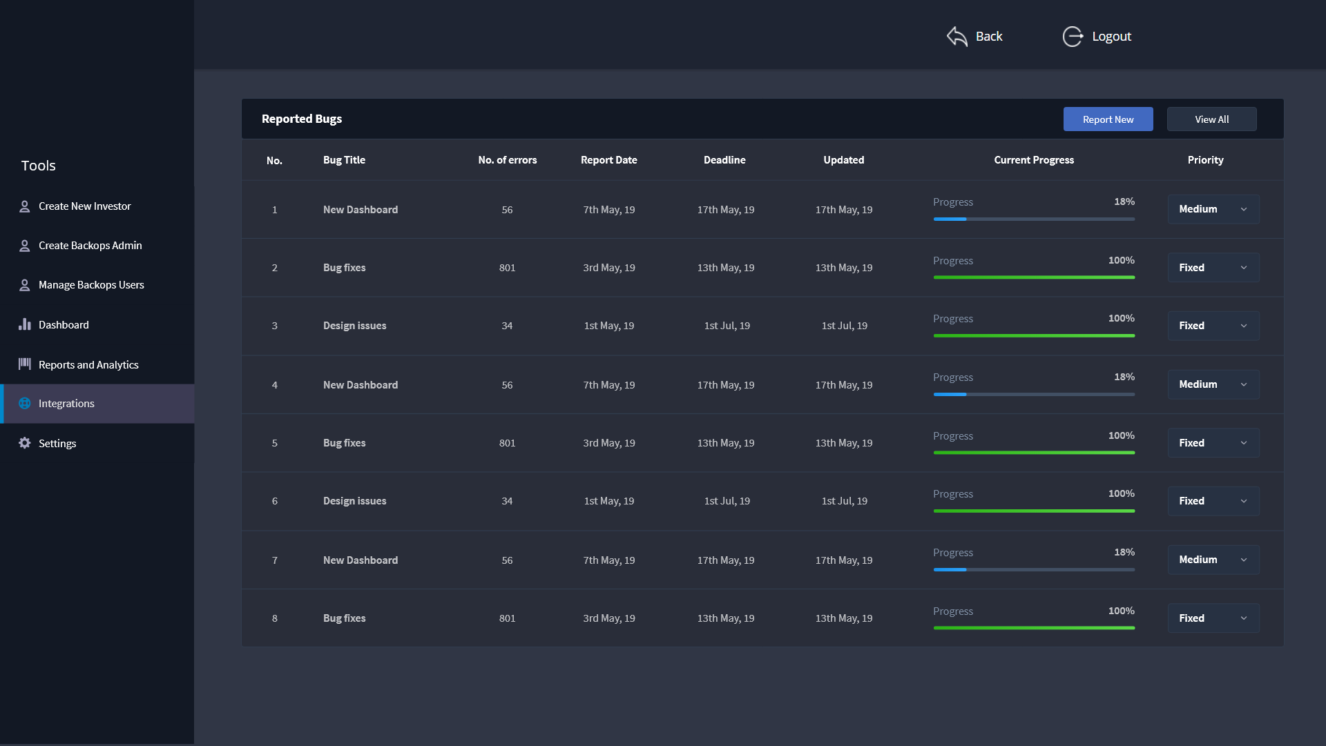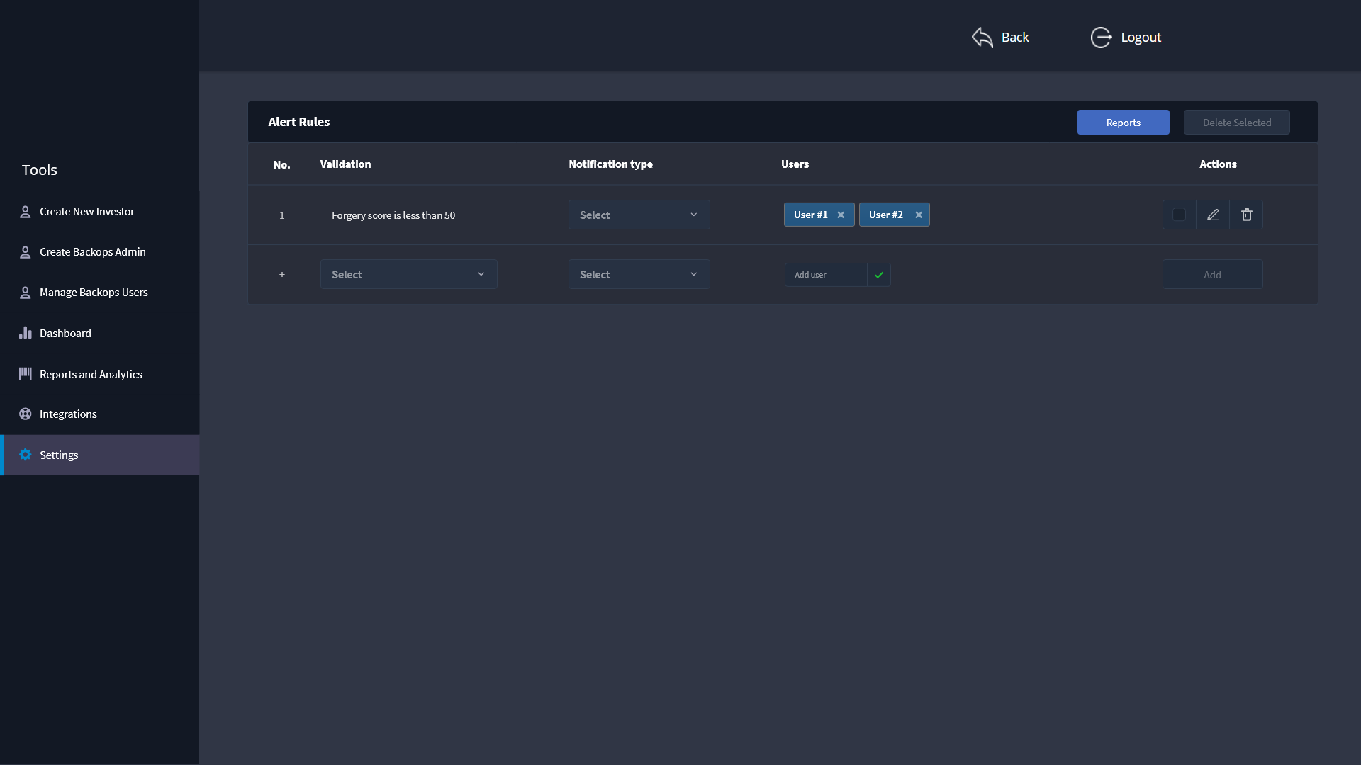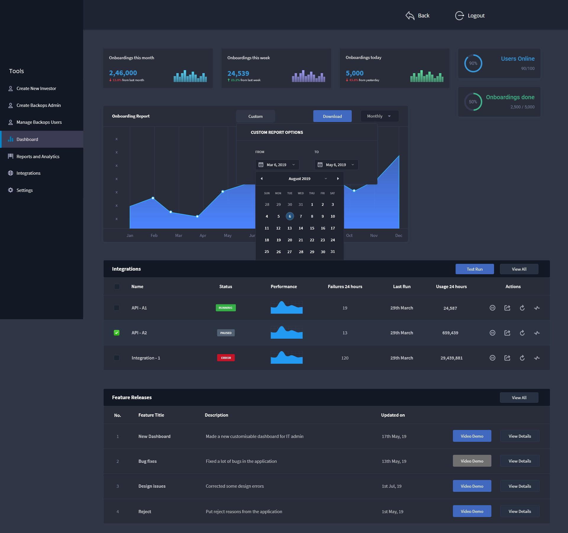 Additional features that a backops user requires to complete his day to day task with ease include the addition of Integration module, Reports for submitting to manager or higher authority and keeping track of number of applications processed.