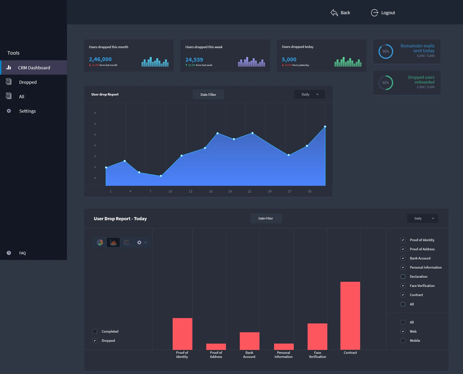 Design of Customer Relationship Module dashobard and features
